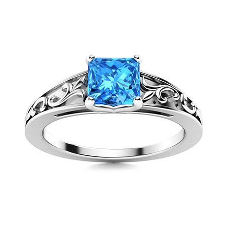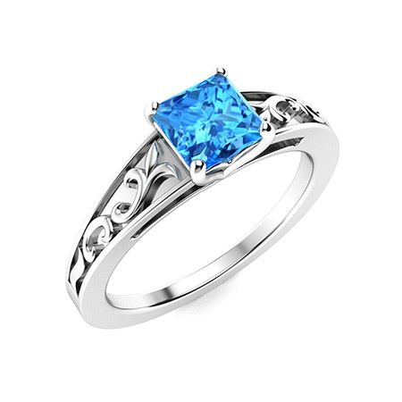 Natural 0.81 CTW Topaz Solitaire Ring 18K White Gold