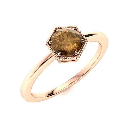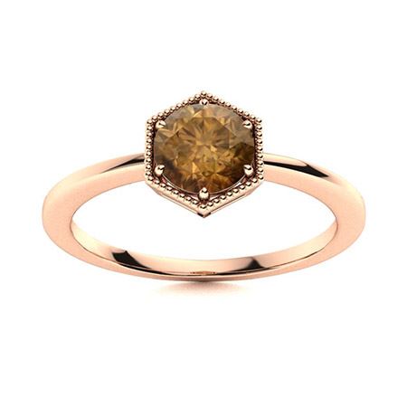 Natural 0.82 CTW Brown Diamond Solitaire Ring 18K Rose Gold