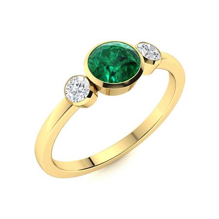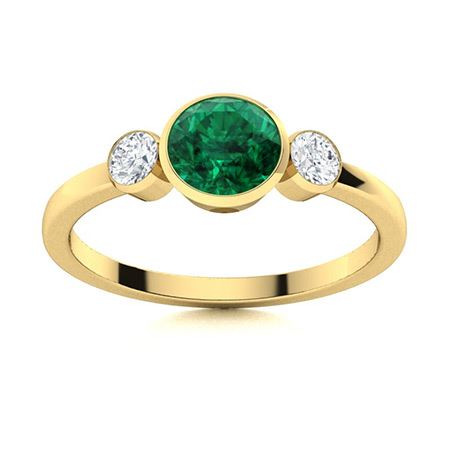 Natural 0.82 CTW Emerald & Diamond Engagement Ring 18K Yellow Gold