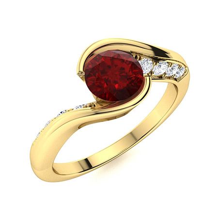 Natural 0.82 CTW Garnet & Diamond Engagement Ring 18K Yellow Gold