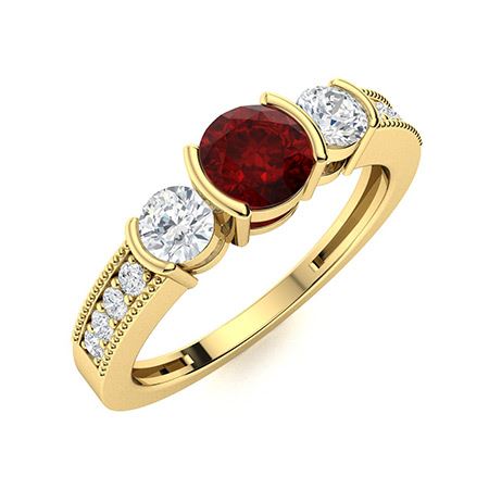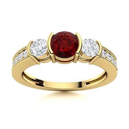 Natural 0.82 CTW Garnet & Diamond Engagement Ring 18K Yellow Gold