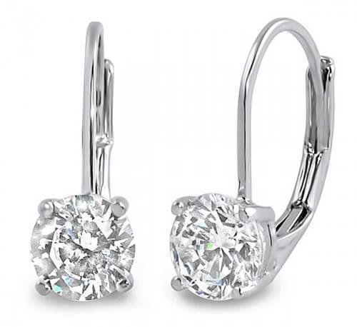 Natural 0.82 CTW Lever Back Round Cut Diamond Earrings 18KT White Gold