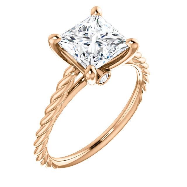 Natural 0.82 CTW Princess cut Rope Style Diamond Engagement Ring 14KT Rose Gold