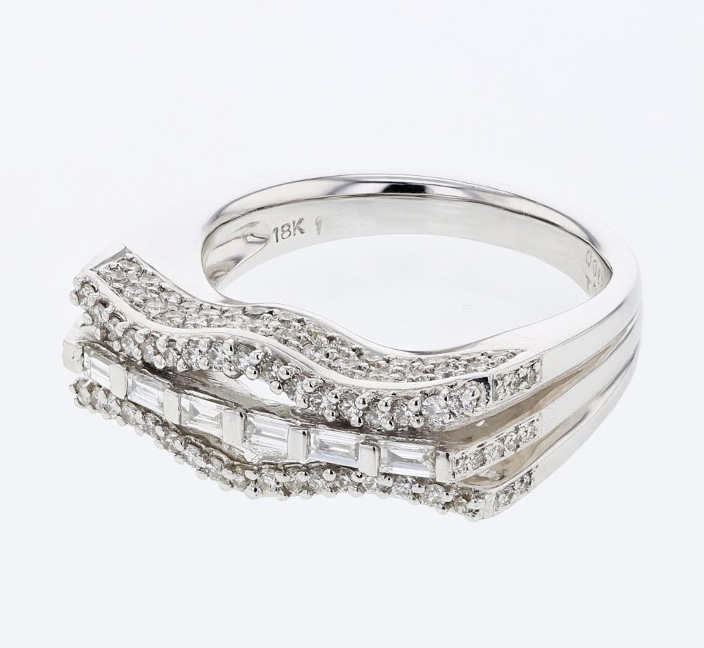 REF-166N5Y ---- Natural 0.83 CTW Diamond & Baguette Ring 18K White Gold