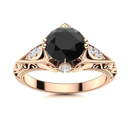 Natural 0.84 CTW Onyx & Diamond Engagement Ring 18K Rose Gold