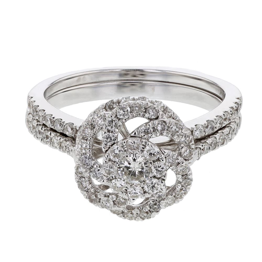 REF-97F2M ---- Natural 0.85 CTW Diamond & Wedding Ring Set 14K White Gold