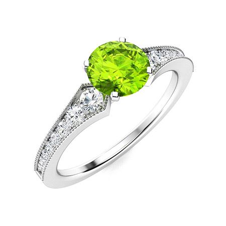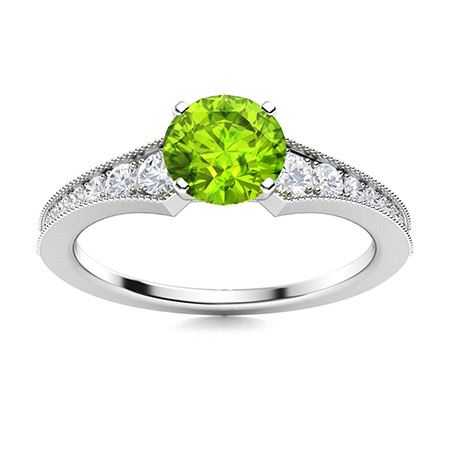 Natural 0.85 CTW Peridot & Diamond Engagement Ring 14K White Gold