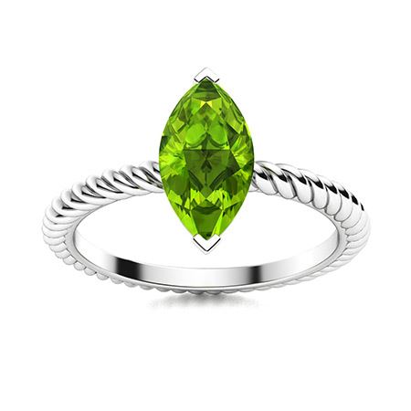 Natural 0.89 CTW Peridot Solitaire Ring 14K White Gold