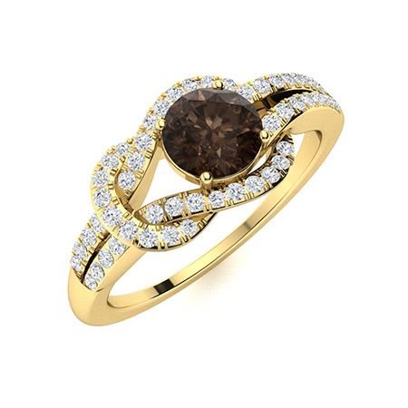 Natural 0.89 CTW Smoky Quartz & Diamond Engagement Ring 14K Yellow Gold