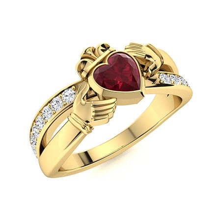 Natural 0.90 CTW Ruby & Diamond Engagement Ring 18K Yellow Gold