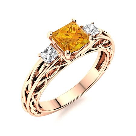 Natural 0.91 CTW Citrine & Diamond Engagement Ring 18K Rose Gold