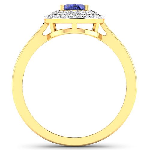 REF-35W9X - Natural 0.91 CTW Tanzanite & Diamond Ring 14K Yellow Gold - REF-35W9X