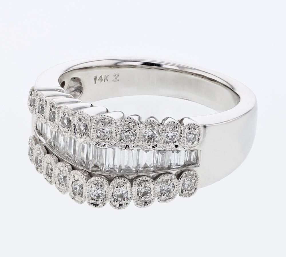 REF-153M9F ---- Natural 0.92 CTW Diamond & Baguette Ring 14K White Gold