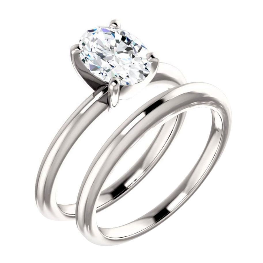 Natural 0.92 CTW Oval Cut Diamond Solitaire Engagement Ring 14KT White Gold