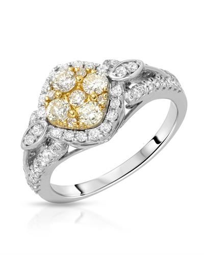 REF-113K4R ---- Natural 0.93 CTW Diamond & Yellow Round Diamond Ring 14K Two Tone Gold