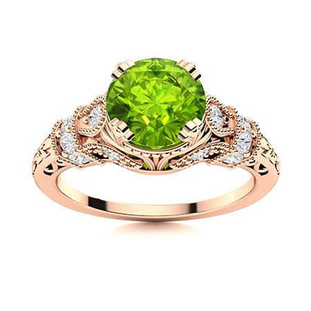 Natural 0.95 CTW Peridot & Diamond Engagement Ring 14K Rose Gold