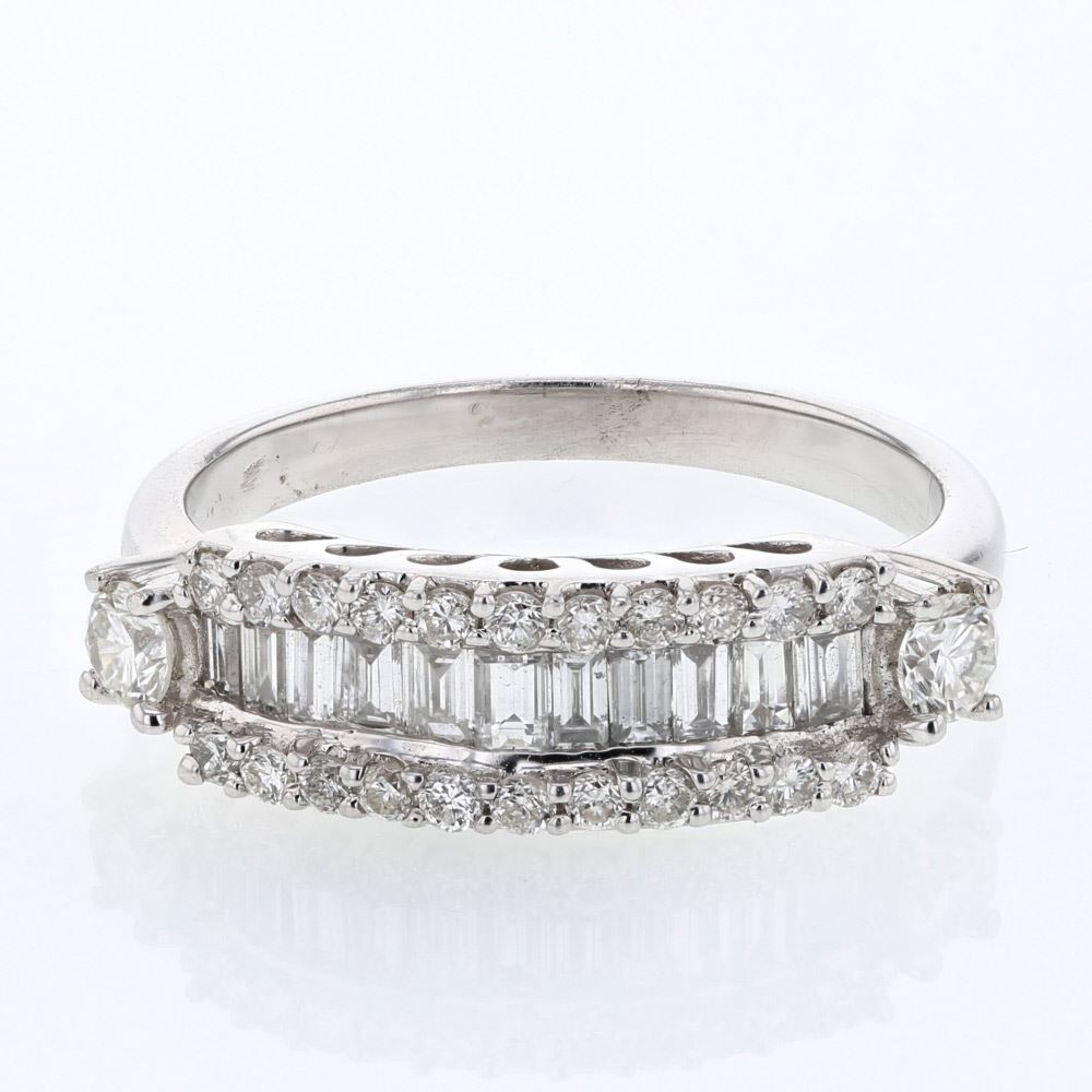 REF-121T5X ---- Natural 0.97 CTW Baguette & Diamond Ring 14K White Gold