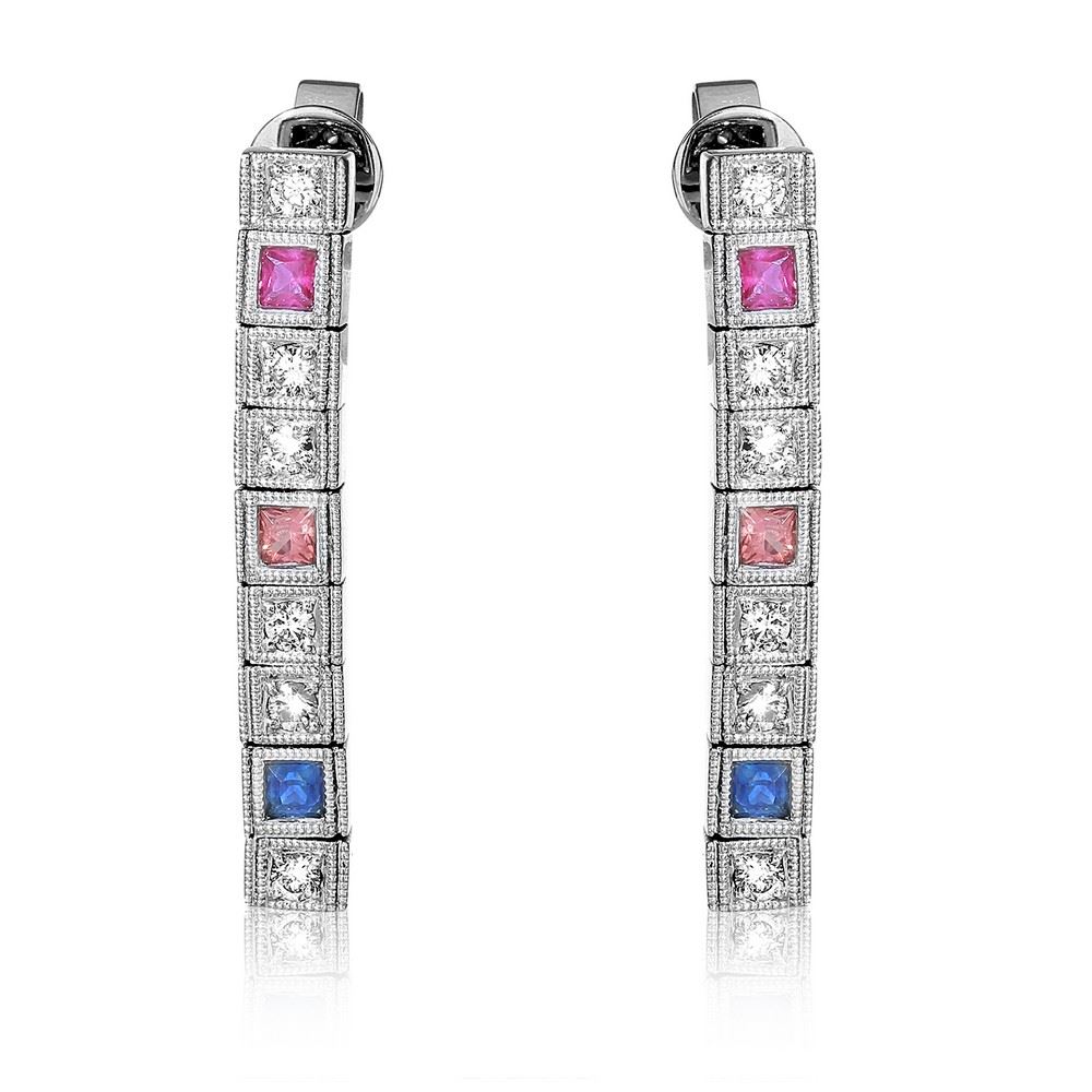 REF-81T9X ---- Natural 0.98 CTW Multi-Sapphire & Diamond Earrings 14K White Gold