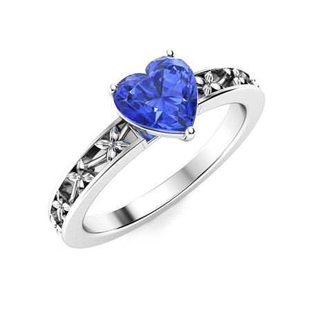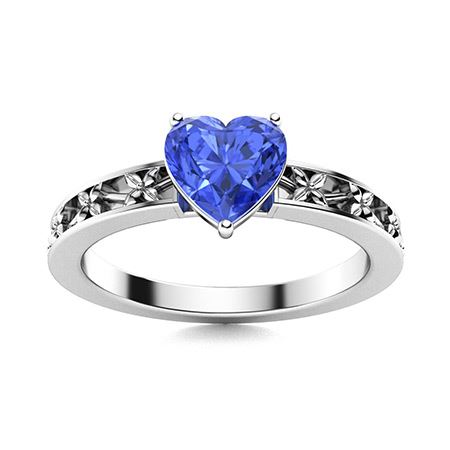 Natural 1.0 CTW Ceylon Sapphire Solitaire Ring 14K White Gold