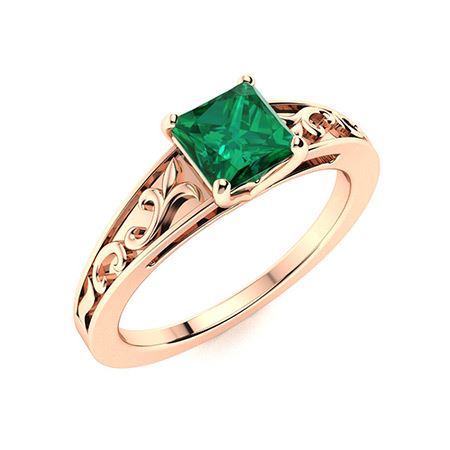 Natural 1.0 CTW Emerald Solitaire Ring 18K Rose Gold