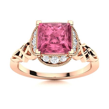 Natural 1.0 CTW Tourmaline & Diamond Engagement Ring 14K Rose Gold
