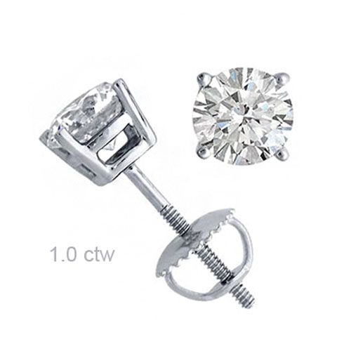 Natural 1.0 ctw Diamond Stud Earrings 14K White Gold * ---- Diamond: 2 Round cut @ 1.0 ctw---- Clarity: SI-I ---- Color: H-K----Metal Purity & Color : 14K Gold-White----Gold weight: 1.50 grams----Shipping: Within 15 business days