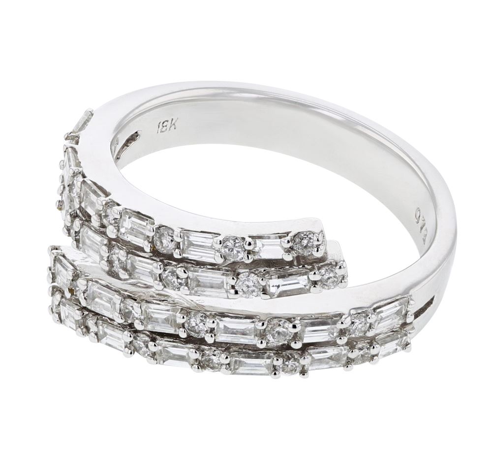 REF-144R2K ---- Natural 1.01 CTW Baguette & Diamond Ring 18K White Gold