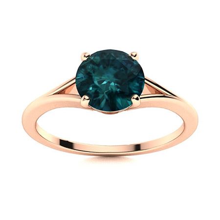Natural 1.01 CTW Blue Diamond Solitaire Ring 14K Rose Gold