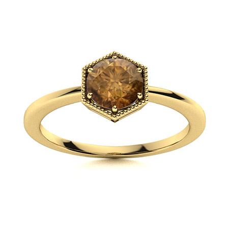 Natural 1.01 CTW Brown Diamond Solitaire Ring 14K Yellow Gold