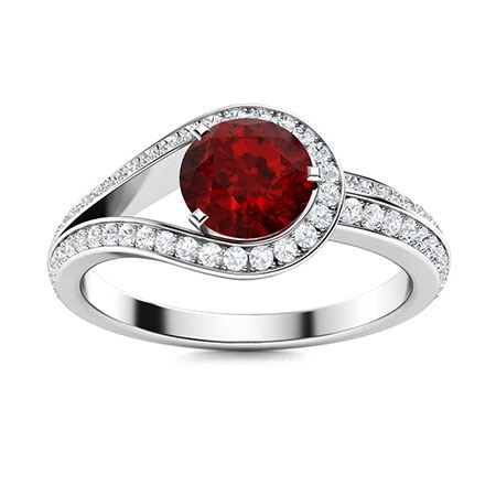 Natural 1.01 CTW Garnet & Diamond Engagement Ring 14K White Gold