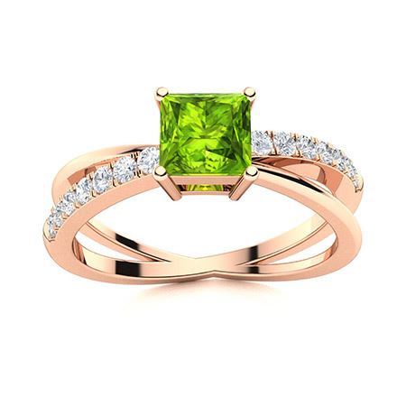 Natural 1.01 CTW Peridot & Diamond Engagement Ring 14K Rose Gold