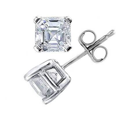 Natural 1.02 CTW Asscher Cut Diamond Stud Earrings 14KT White Gold
