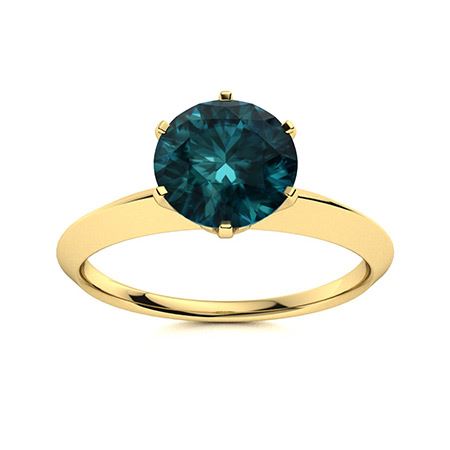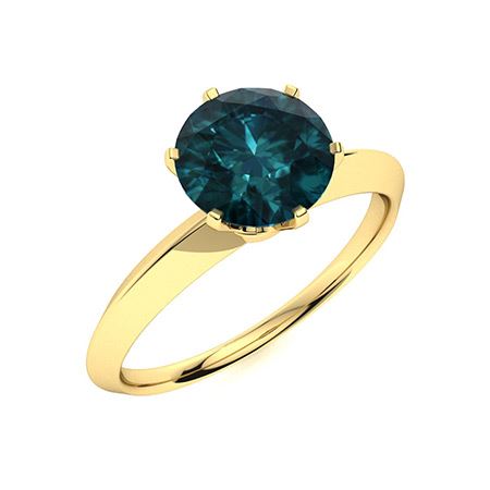 Natural 1.02 CTW Blue Diamond Solitaire Ring 18K Yellow Gold