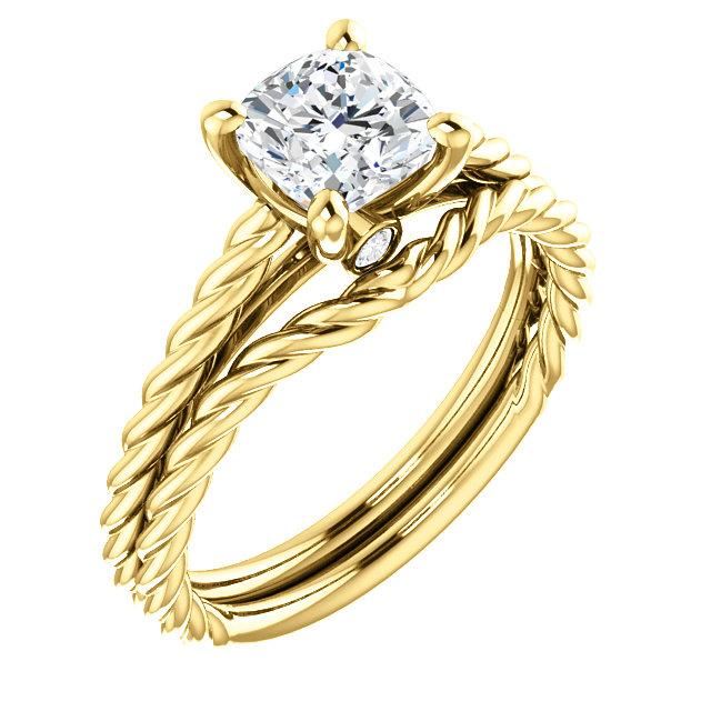 Natural 1.02 CTW Cushion Cut Infinity Rope Diamond Engagement Set 14KT Yellow Gold