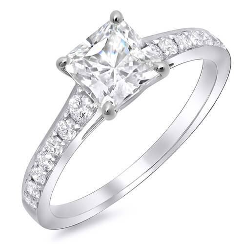 Natural 1.02 CTW Square Radiant Cut Diamond Ring 14KT White Gold