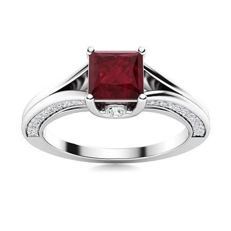 Natural 1.03 CTW Ruby & Diamond Engagement Ring 18K White Gold