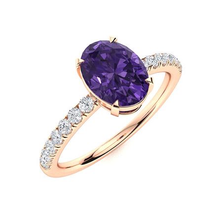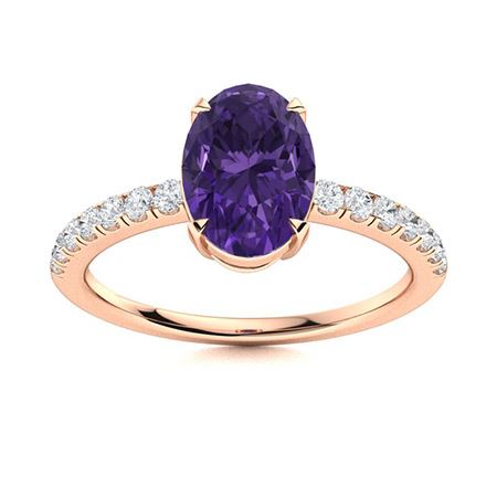 Natural 1.05 CTW Amethyst & Diamond Engagement Ring 14K Rose Gold