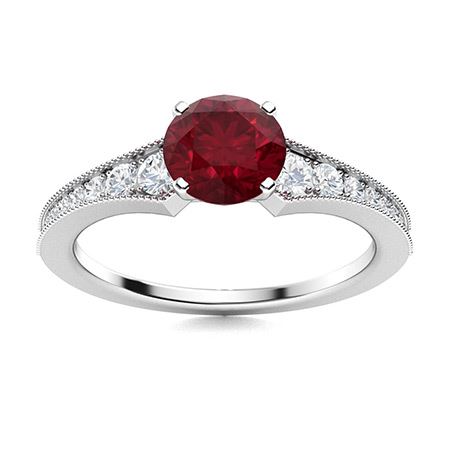 Natural 1.05 CTW Ruby & Diamond Engagement Ring 14K White Gold