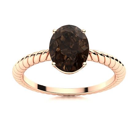 Natural 1.05 CTW Smoky Quartz Solitaire Ring 18K Rose Gold