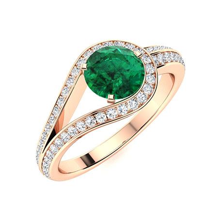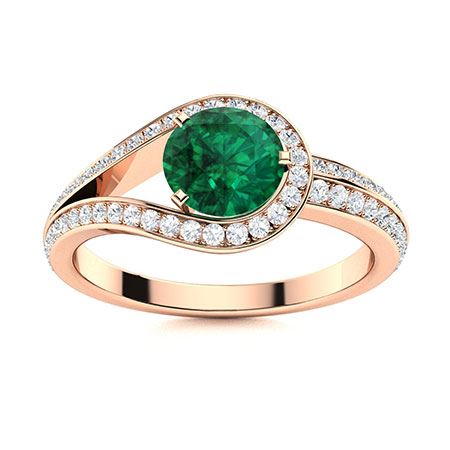 Natural 1.06 CTW Emerald & Diamond Engagement Ring 14K Rose Gold