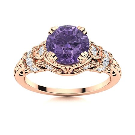 Natural 1.06 CTW Iolite & Diamond Engagement Ring 18K Rose Gold