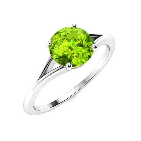 Natural 1.06 CTW Peridot Solitaire Ring 18K White Gold