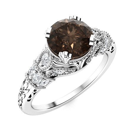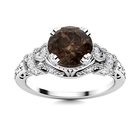 Natural 1.06 CTW Smoky Quartz & Diamond Engagement Ring 18K White Gold