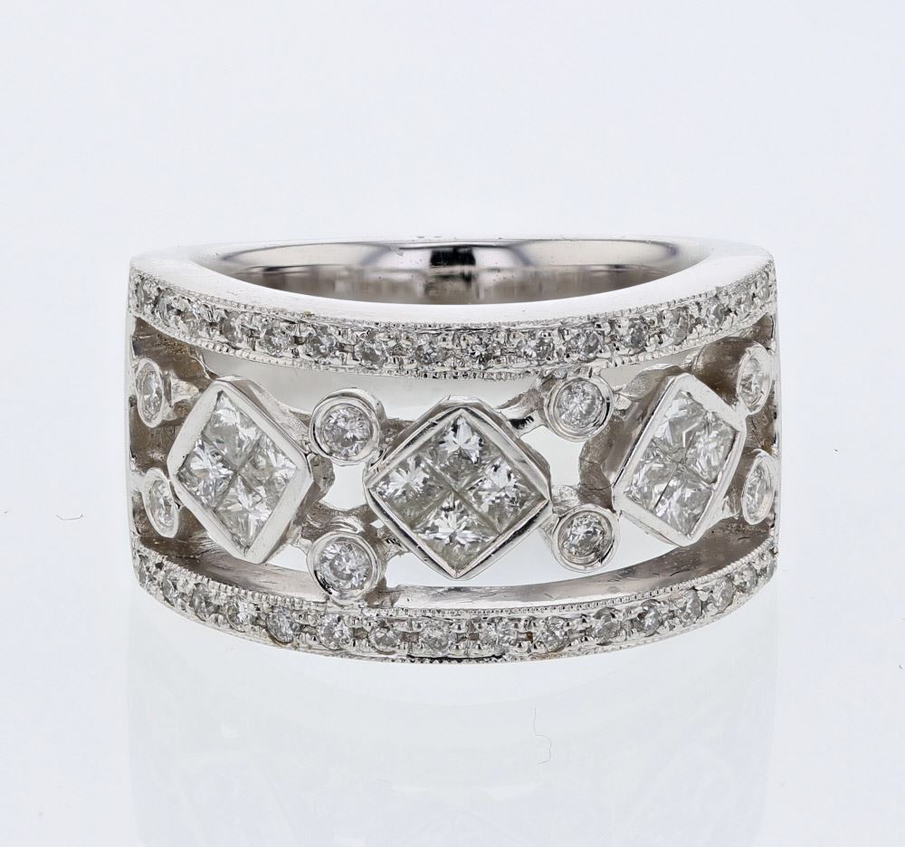 REF-252X9T ---- Natural 1.07 CTW Princess Diamond Ring 18K White Gold
