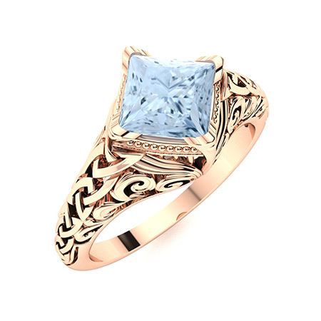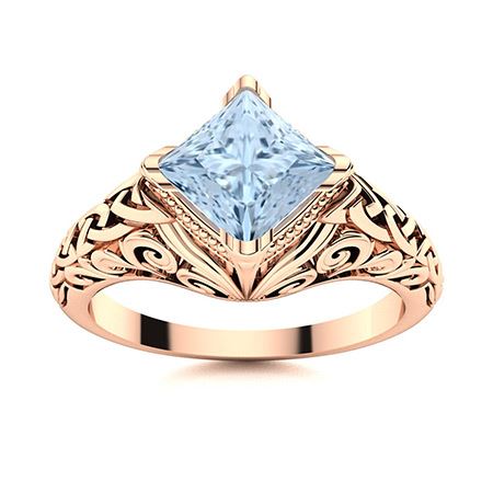 Natural 1.08 CTW Aquamarine Solitaire Ring 14K Rose Gold