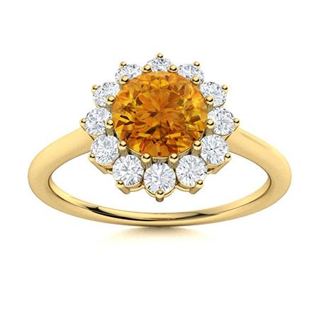 Natural 1.08 CTW Citrine & Diamond Engagement Ring 18K Yellow Gold