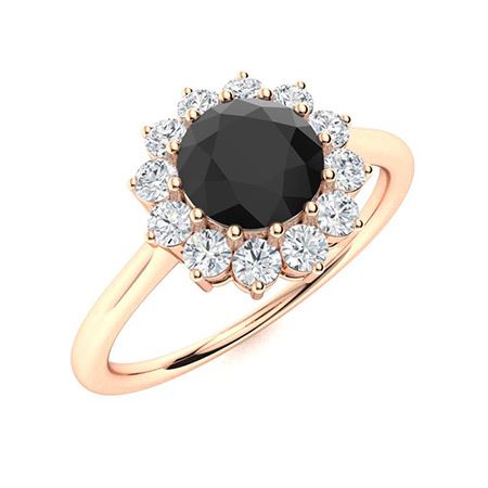 Natural 1.08 CTW Onyx & Diamond Engagement Ring 18K Rose Gold