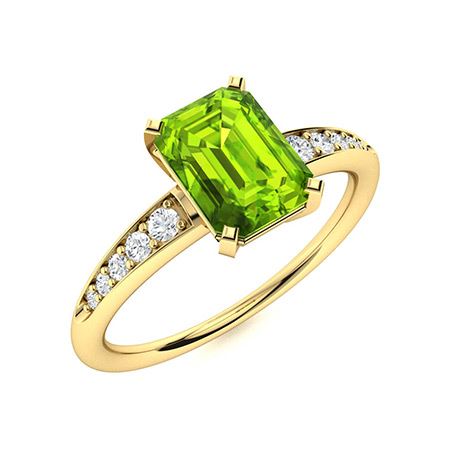 Natural 1.08 CTW Peridot & Diamond Engagement Ring 14K Yellow Gold