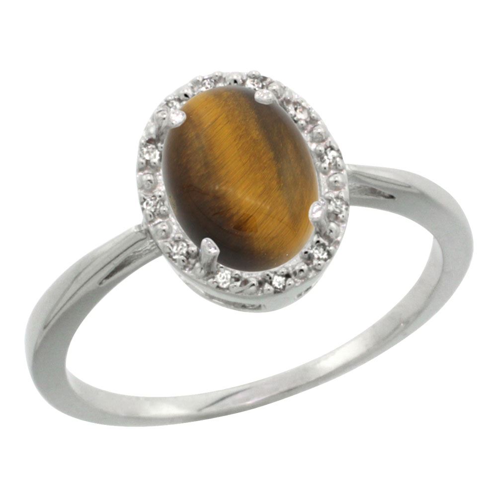 Natural 1.08 ctw Tiger-eye & Diamond Engagement Ring 10K White Gold - SC-CW924101-REF#19R3Z