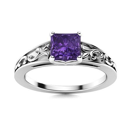 Natural 1.09 CTW Amethyst Solitaire Ring 18K White Gold